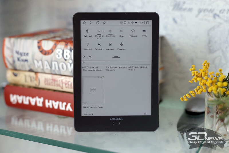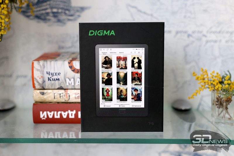 Бренд Digma группы компаний «Мерлион» предлагает широкий ассортимент электроники, включая электронные книги. Ридер Digma P6 сочетает современные технологии и продуманный дизайн, что делает его отличным выбором для любителей чтения. Устройство выполнено в строгом тёмно-сером корпусе, имеет компактные размеры и малый вес, что позволяет удобно держать его в руке даже при длительном чтении.