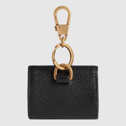 С другой стороны, второй новый аксессуар называется GUCCI GG Marmont AirPods Case. В отличие от предыдущего, этот можно прикрепить к ремню или сумке, благодаря наличию застежки. Далее корпус выполнен из черной кожи и металла золотистого цвета. Он также имеет знаковый двойной логотип G GUCCI.